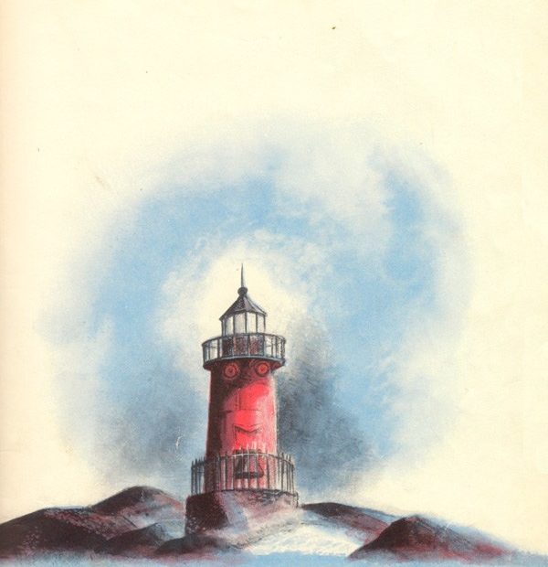 llustración de Lynd Ward para el libro “The Little Red Lighthouse and the Great Gray Bridge” de Hildegarde Swift (1942).